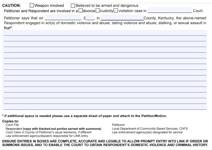 ▲图中横线部分供申诉人填写家庭暴力或约会暴力细节回忆