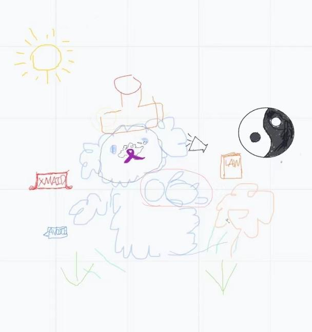 画像中心是新加坡地图, 一条代表“反对暴力” 的紫色丝带覆盖在其上空,这是张语嫣学姐根据此次分享主题所创作的初始画像。