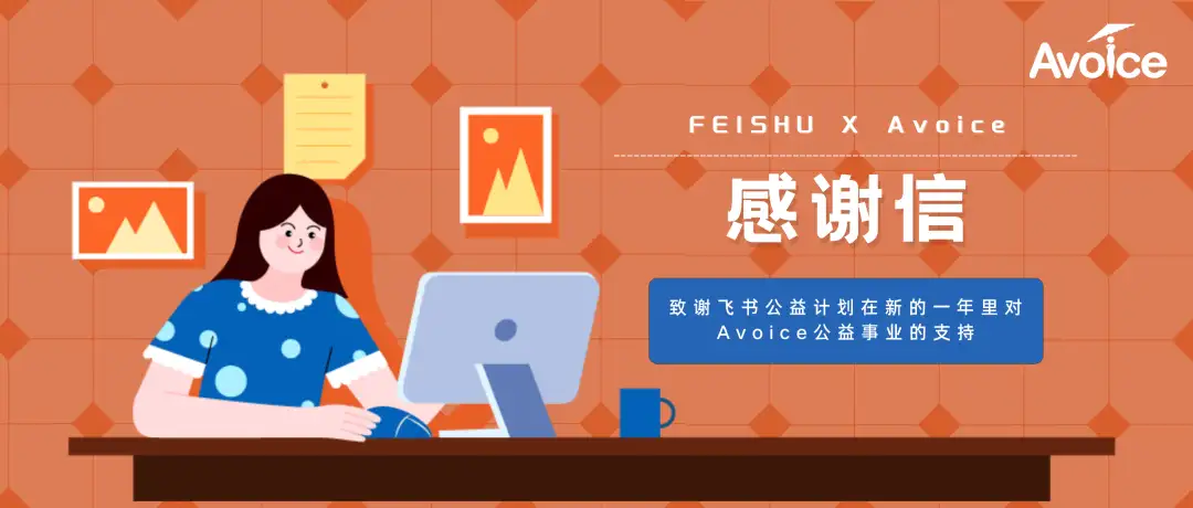 Avoice感谢信丨致谢飞书公益计划在新的一年里对Avoice公益事业的支持