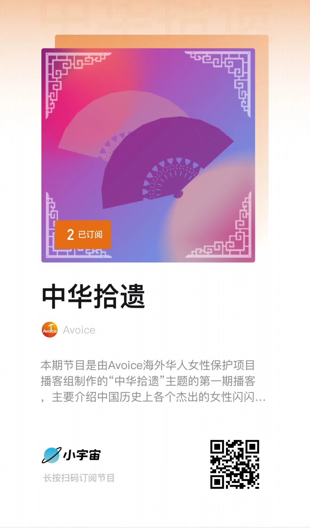 Avoice海外华人女性保护项目于5月27日上线的播客《中华拾遗》,如今在喜马拉雅和小宇宙都可以收听了!