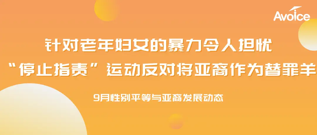 针对老年妇女的暴力令人担忧,“停止指责”运动反对将亚裔作为替罪羊 | 9月性别平等与亚裔发展动态