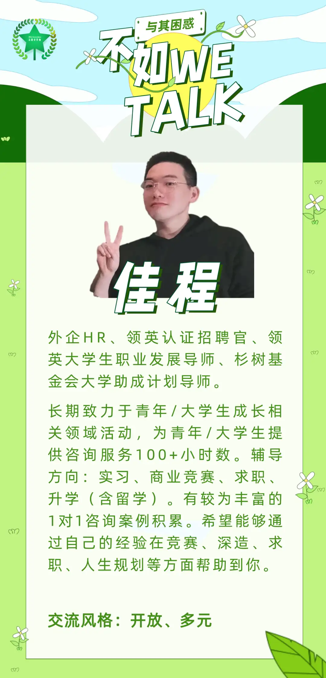 2. 具备一定的社会实践或工作经验,在求职/学习/考公/深造/竞赛/科研/创业/社会实践/人生规划等一个或多个领域较为突出。