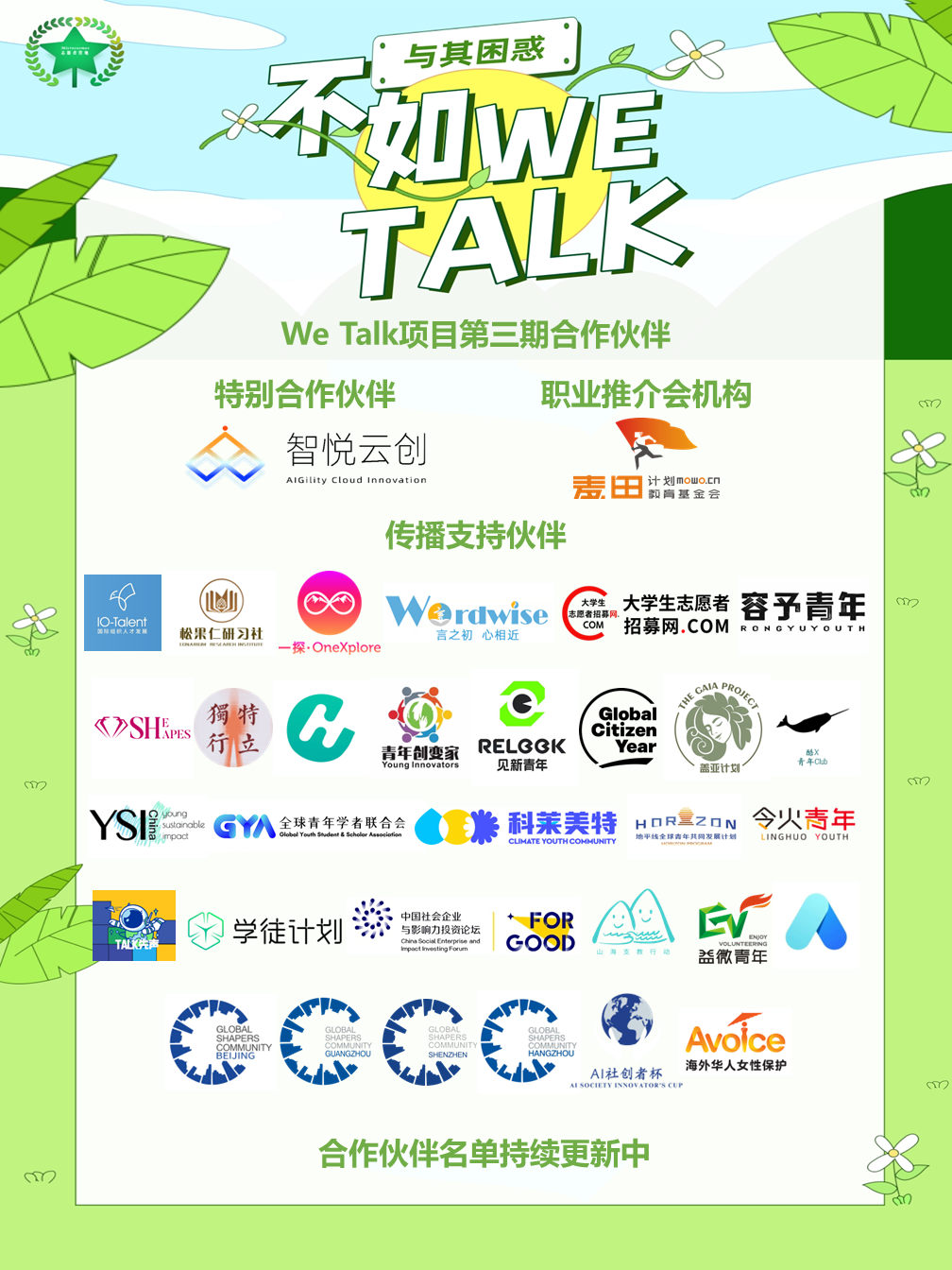 不用担心,We Talk 公益成长项目正是为你量身打造的灯塔。我们期待为你指引方向,助力你的成长。