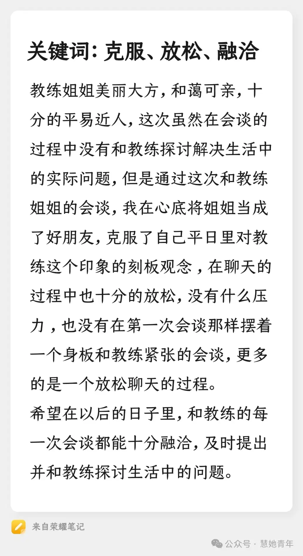 在不提交文章反馈的会谈中,我们希望您能以其他形式思考与复盘会谈,从中有所收获。
