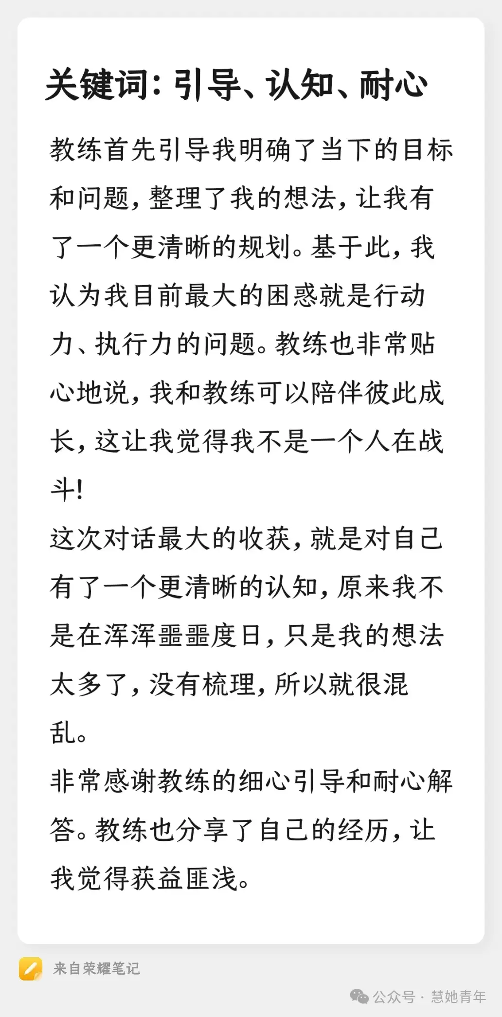 “每个人在走向成功的路上都应该有一名教练在背后支持”