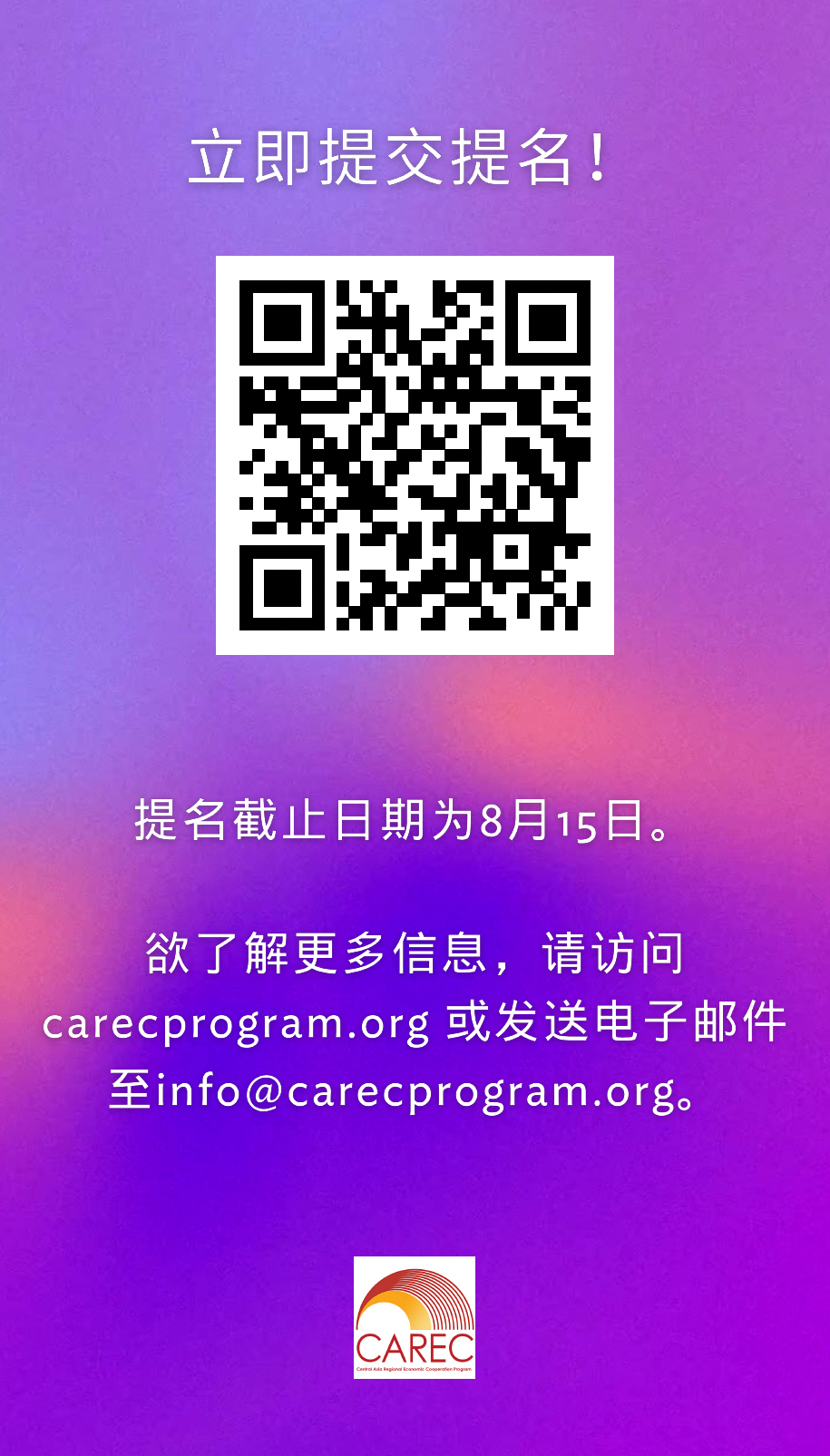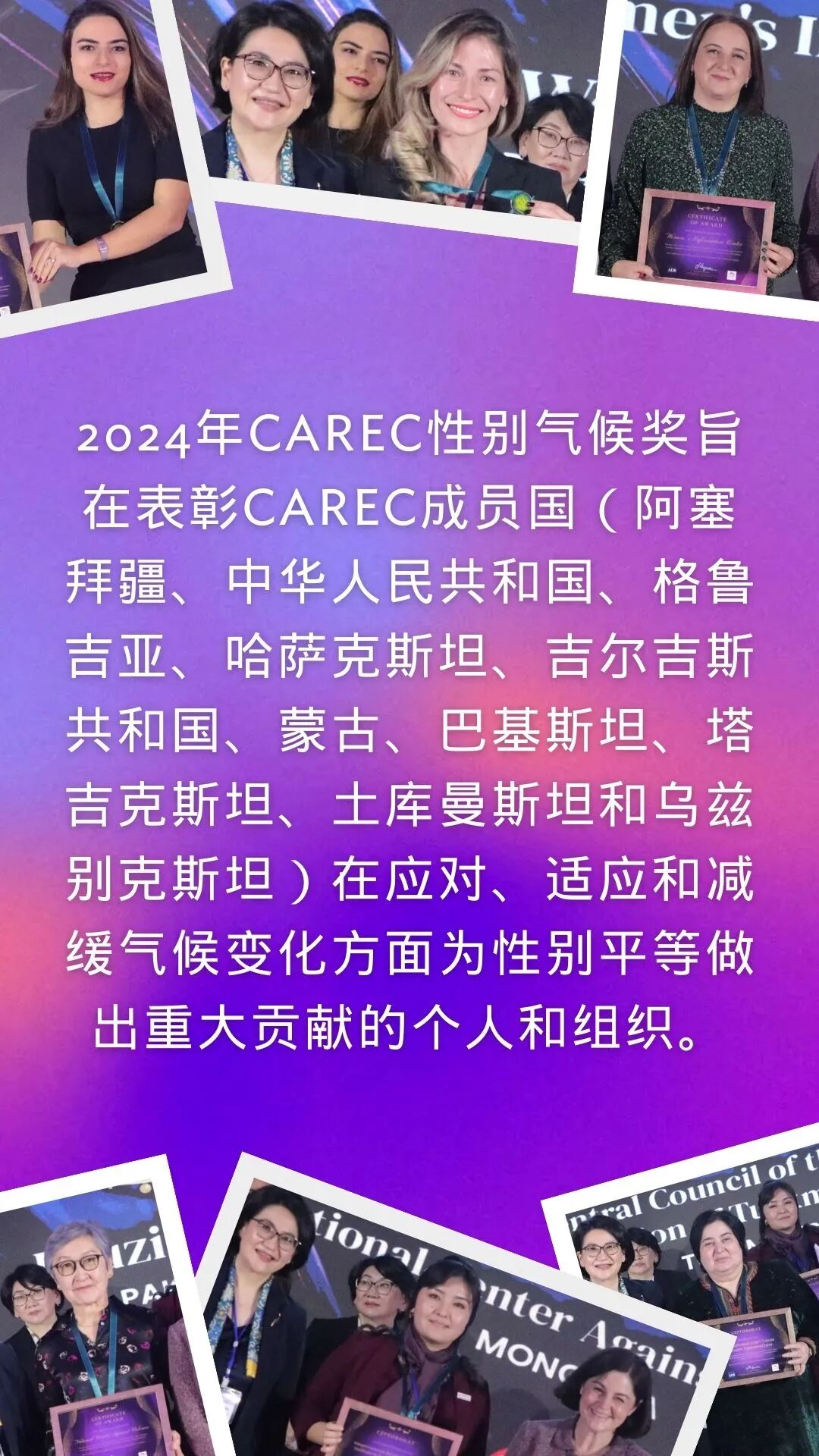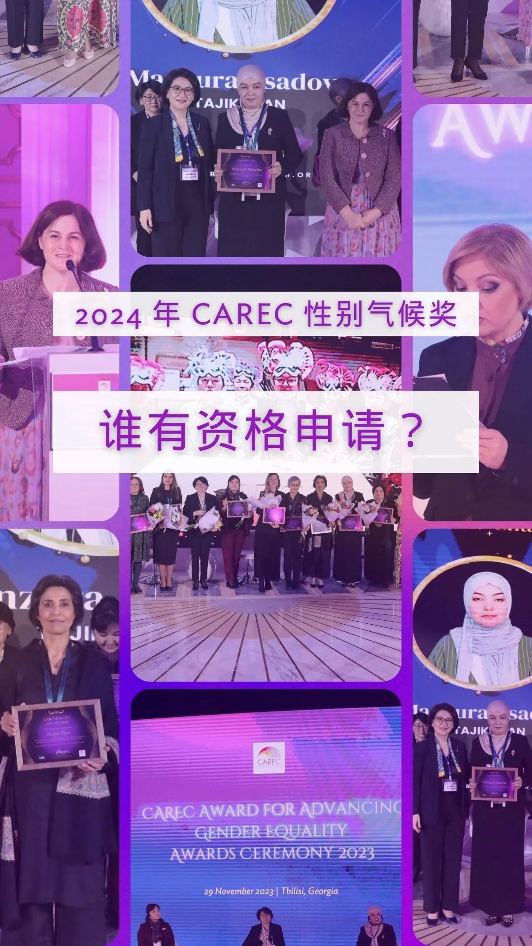 Avoice推荐|【征集活动】CAREC计划征集“2024年推进气候行动中的性别平等奖”提名, 8月15日截止!2024年8月10日中亚区域经济合作(CAREC)计划征集“2024年推进气候行动中的性别平等将”提名,以表彰在抵御、适应和减缓气候变化背景下推动性别平等做出重大贡献的组织和个人。提名截止日期为2024年8月15日。CAREC计划将于11月在哈萨克斯坦举办的CAREC女性商业论坛上召开表彰大会,为获奖者颁奖。信息来源|亚洲开发银行
