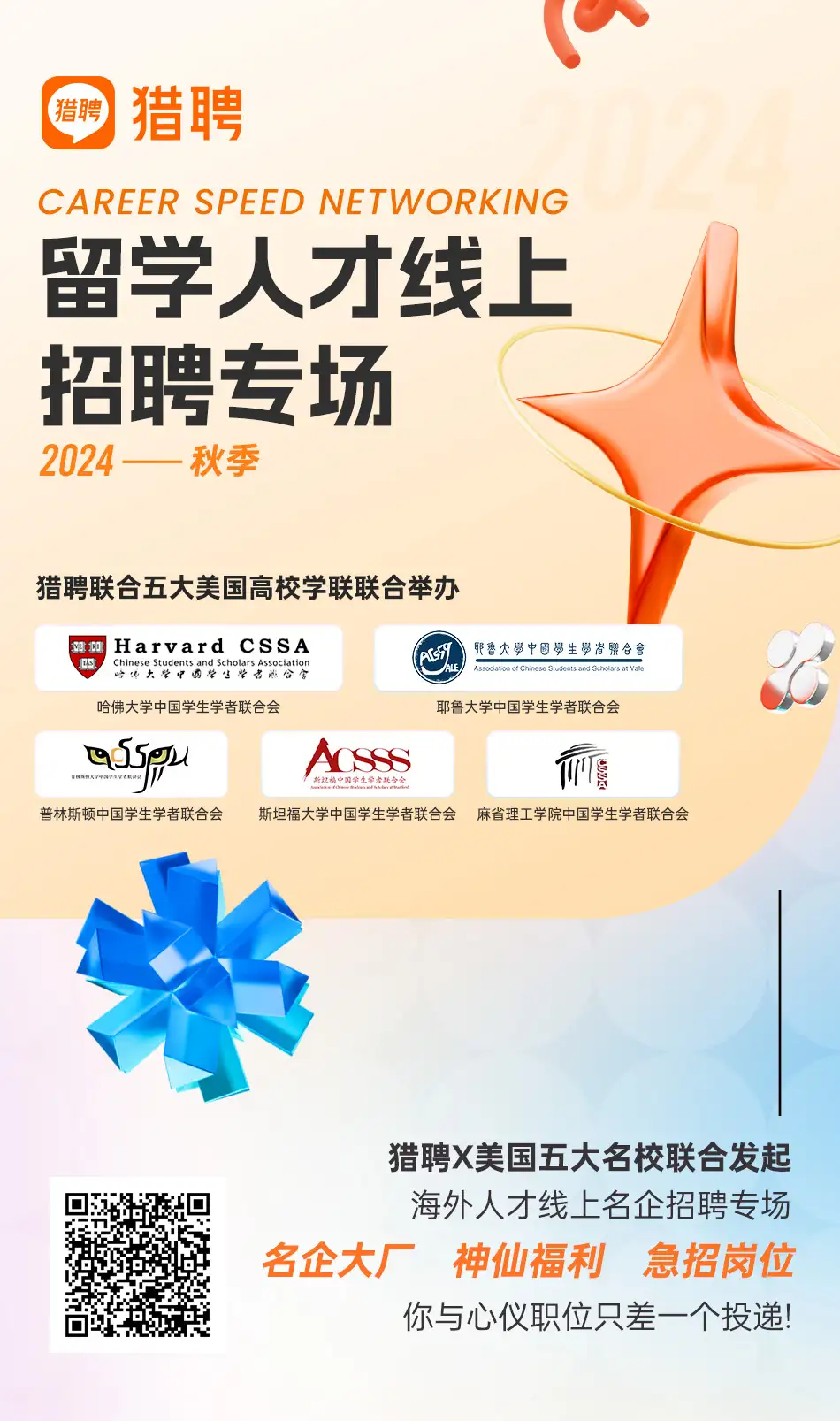 猎聘X美国五大名校联合发起海外人才线上招聘专场啦!!!