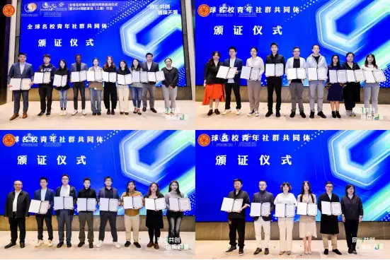 副秘书长苏润向共同体代表许迩加、朱家卉授予旗“全球名校青年社群共同体”旗帜,并与上海市侨办侨务事务处处长沈聪、上海市侨联基层工作部部长栾旭琛等分四批向“全球名校青年社群共同体”首批协同理事代表颁发“协同理事”证书。“青年兴则国家兴,青年强则国家强”。哈佛大学政治经济协会主席梁严、斯坦福中国教育实践与创新者协会联席主席李卓瑞、英国华威大学校友社群负责人朱虹慧共同宣读《全球名校青年社群共同体上海宣言》。他们强调,“全球名校青年社群共同体始终以国际青年领航为引领,以海创领航发展中心为载体,打造成为一个开放、包容、进取的组织。我们欢迎更多有志青年加入我们,与我们携手共进,共同开创属于青年的新时代!”“在上海这座充满活力的城市,我们共同见证了全球名校青年社群共同体的诞生。让我们携手并肩,以青春之我,创造青春之世界,打造中国式国际青年共同体,为构建人类命运共同体贡献青春力量!”
