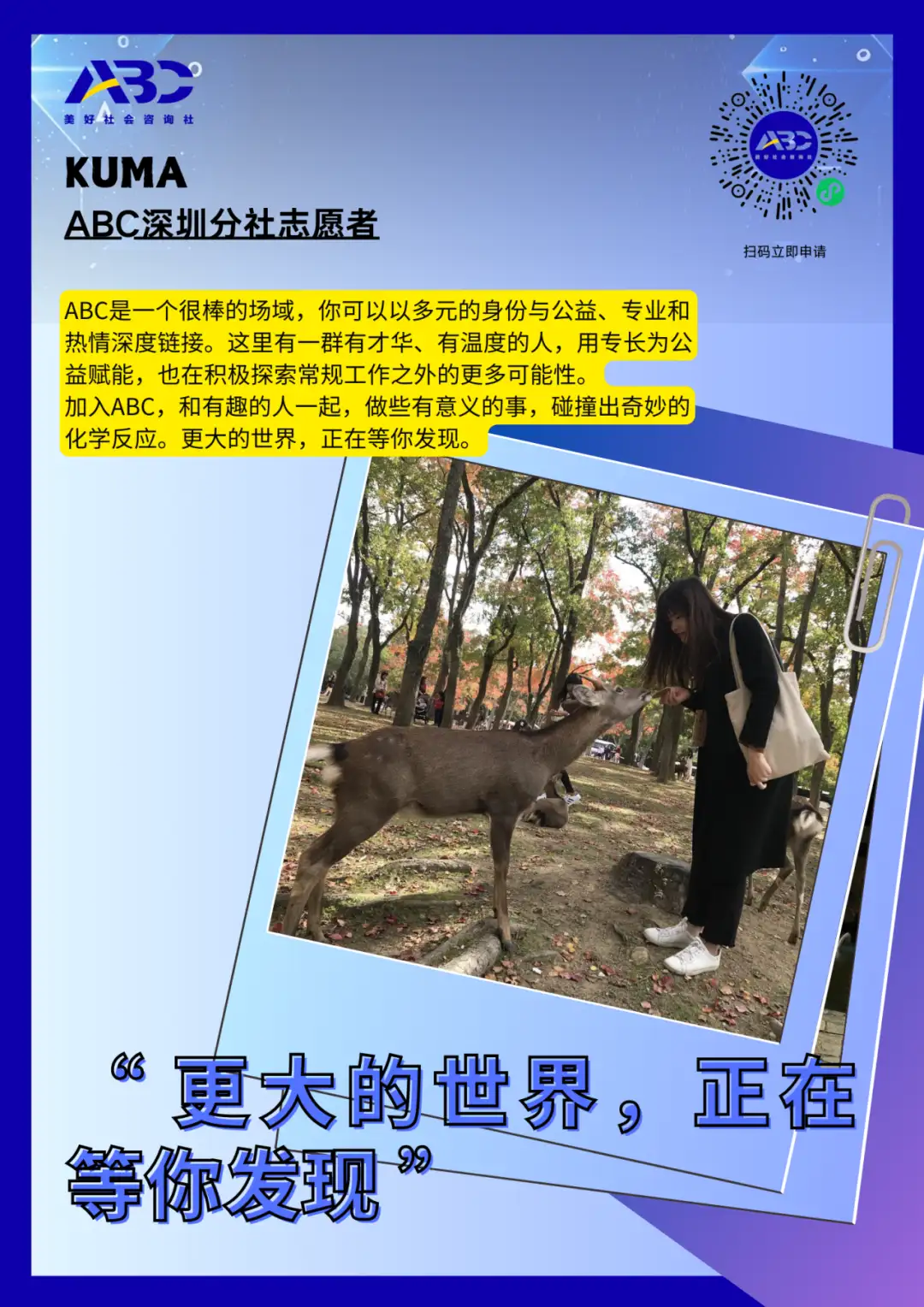 请在ABC官方微信公众号对话框内回复“志愿者QA ”,查看常见申请问题解答。