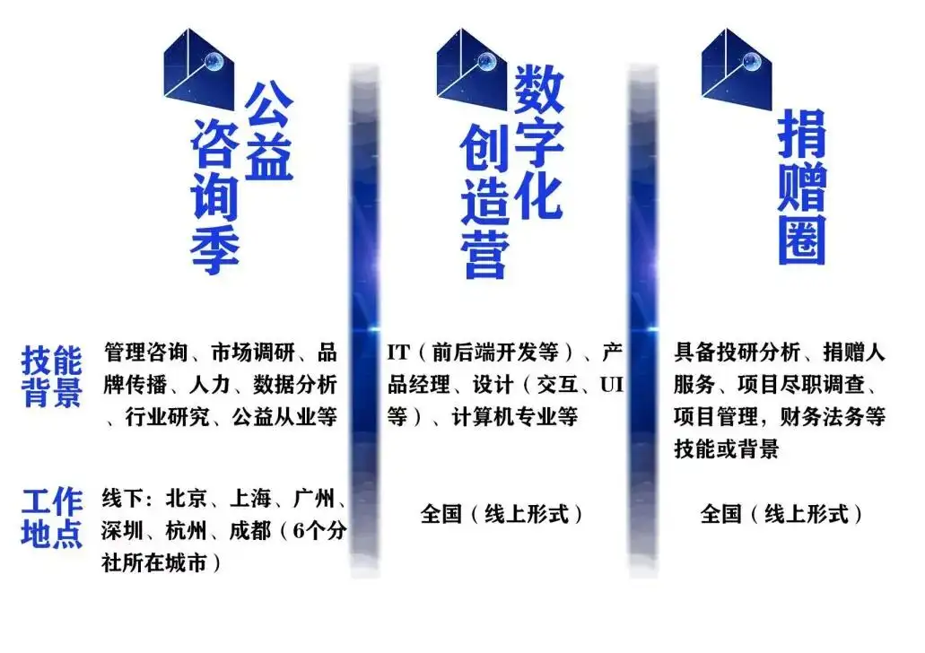 一表概览公益咨询季/数字化创造营/捐赠圈招募区别