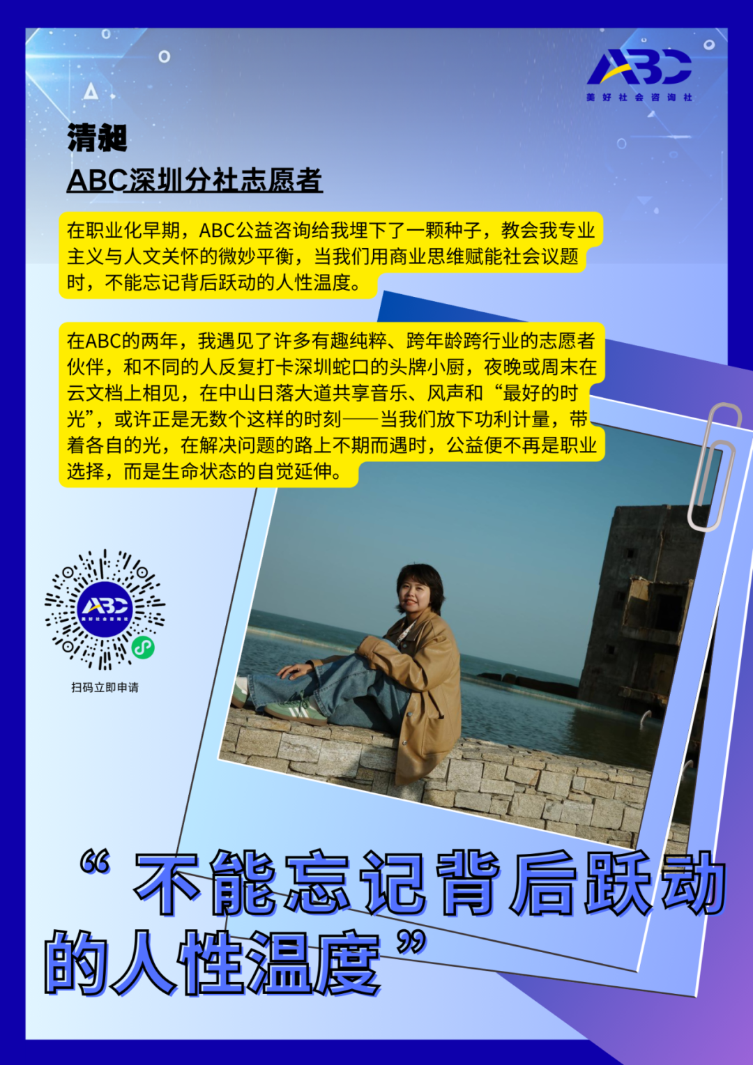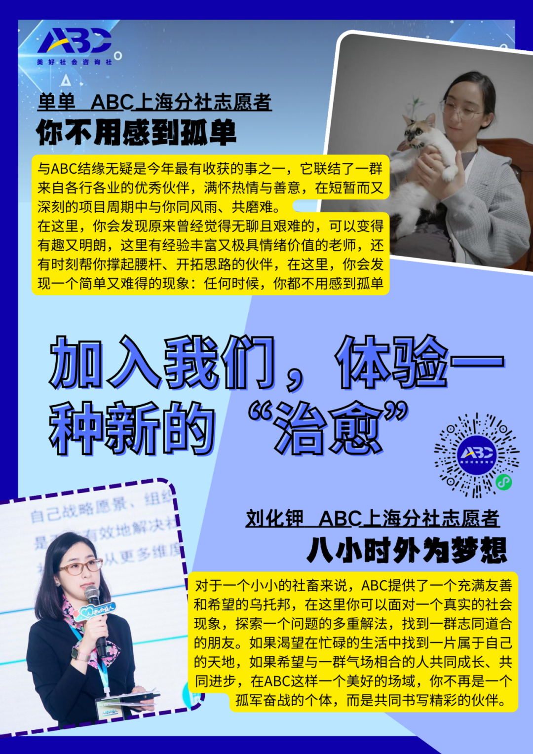 请在ABC官方微信公众号对话框内回复“志愿者QA ”,查看常见申请问题解答。