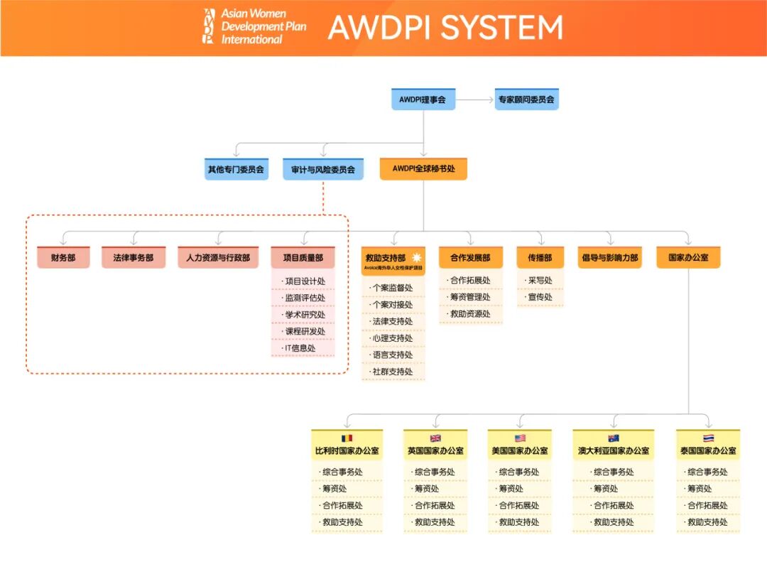 AWDPI亚裔女性国际发展计划整体组织架构